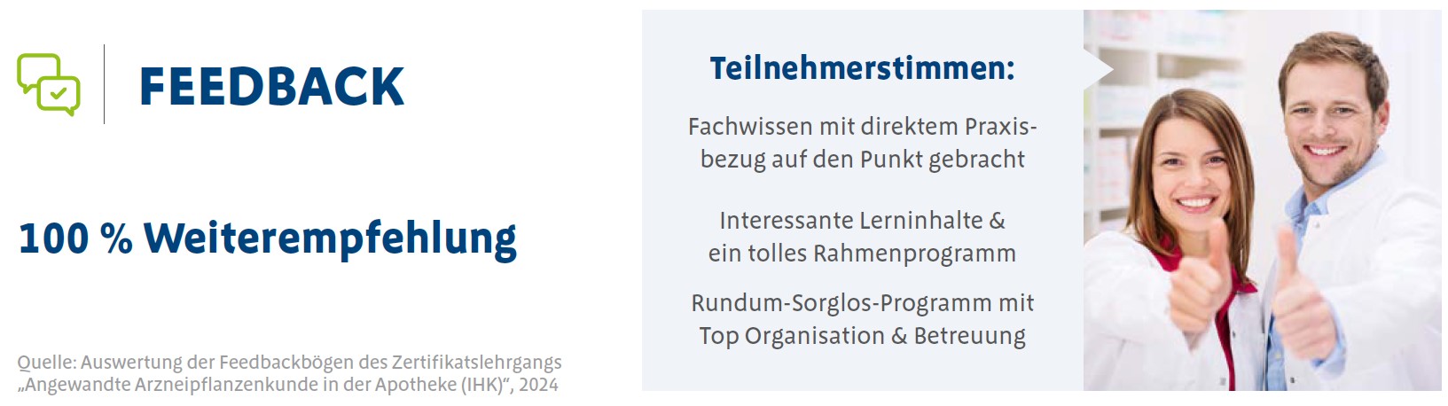 Der Zertifikatslehrgang „Angewandte Arzneipflanzenkunde in der Apotheke (IHK)“ ist weit mehr als eine klassische Fortbildung - er ist ein echter Gewinn für Sie und Ihre gesamte Apotheke!